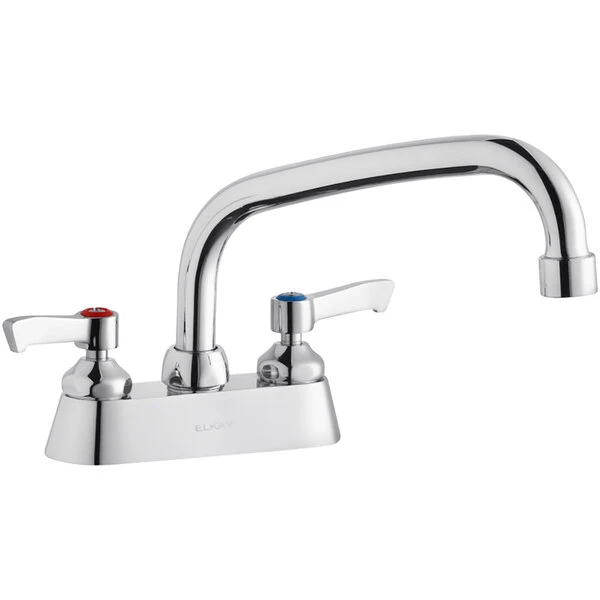 Elkay LK406AT08L2 Deck Mount Faucet With 4″ Centers, 8″ Arc Tube Swing Spout, 1.5 GPM Aerator, And 2″ Lever Handles