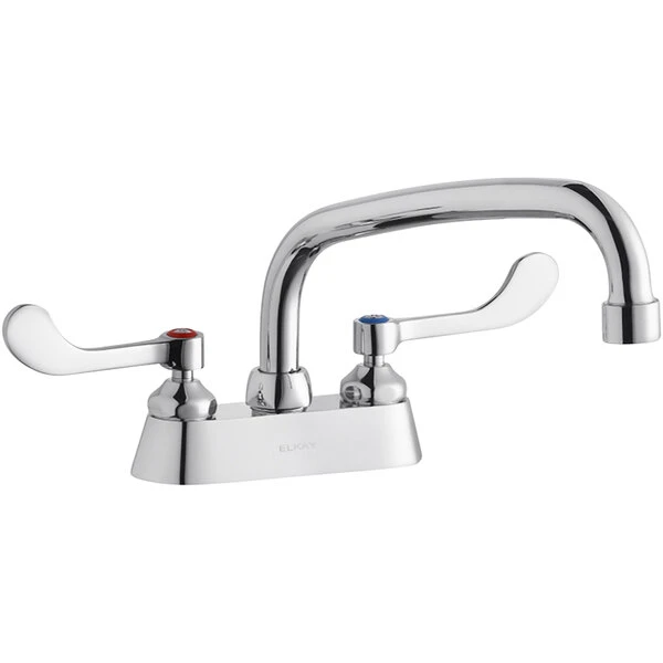 Elkay LK406AT08T4 Deck Mount Faucet With 4″ Centers, 8″ Arc Tube Swing Spout, 1.5 GPM Aerator, And 4″ Wristblade Handles