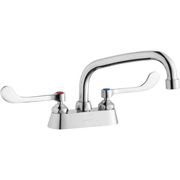 Elkay LK406AT10T6 Deck Mount Faucet With 4″ Centers, 10″ Arc Tube Swing Spout, 1.5 GPM Aerator, And 6″ Wristblade Handles
