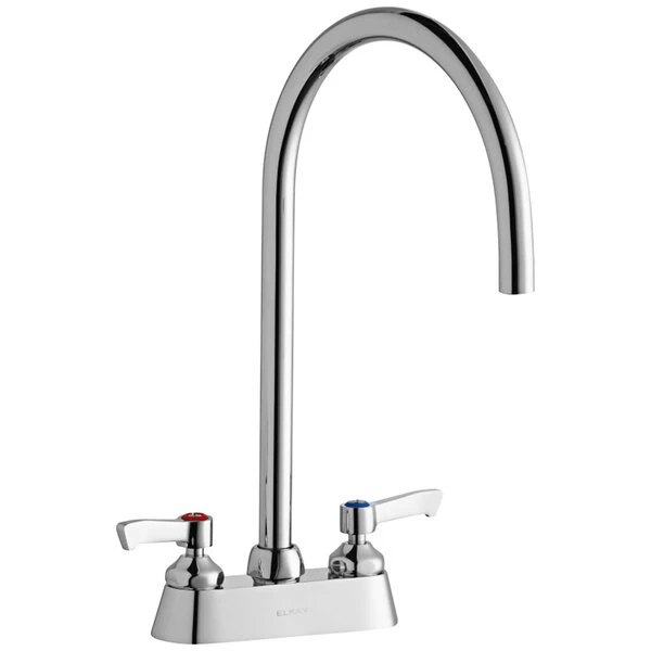 Elkay LK406LGN08L2 Deck Mount Laminar Flow Faucet With 4″ Centers, 8″ Gooseneck Swing Spout, And 2″ Lever Handles