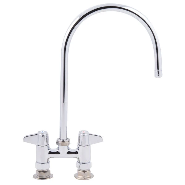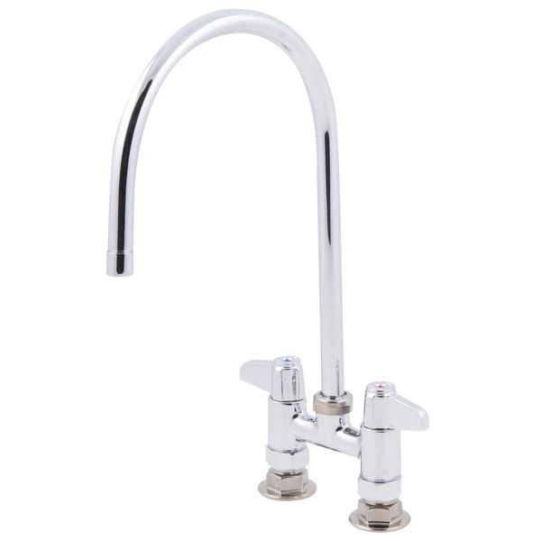 T&S Brass And Bronze Works Equip By T&S 5F-4DLS09 Deck Mounted Faucet With 9″ Gooseneck Spout, 4″ Centers, Laminar Flow Device, And Lever Handles