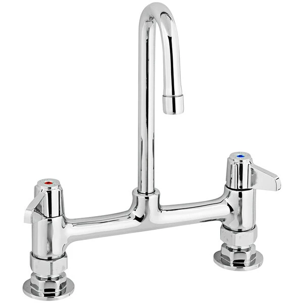 T&S Brass And Bronze Works Equip By T&S 5F-8DLX03 Deck Mounted Faucet With 2 13/16″ Gooseneck Spout, 8″ Centers, Laminar Flow Device, And Lever Handles