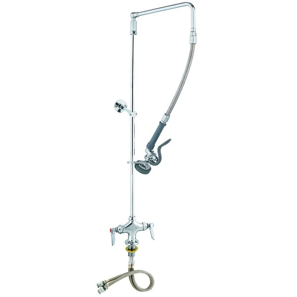T&S Brass And Bronze Works T&S B-0111-BC EasyInstall Deck Mounted 39″ High Pre-Rinse Faucet With Flex Inlets, Low Flow Spray Valve, Swivel Arm, 20″ Hose, And 6″ Wall Bracket