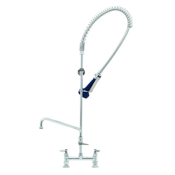T&S Brass And Bronze Works T&S B-0123-A08-B08C EasyInstall Deck Mounted 46″ High Pre-Rinse Faucet With Adjustable 8″ Centers, Ergonomic Low Flow Spray Valve, 44″ Hose, 8″ Add-On Faucet, And 6″ Wall Bracket
