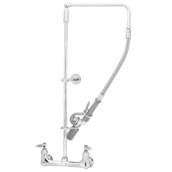 T&S Brass And Bronze Works T&S B-0131-BC Wall Mounted 29 3/4″ High Pre-Rinse Faucet With Adjustable 8″ Centers, Low Flow Spray Valve, Swivel Arm, 20″ Hose, And 6″ Wall Bracket