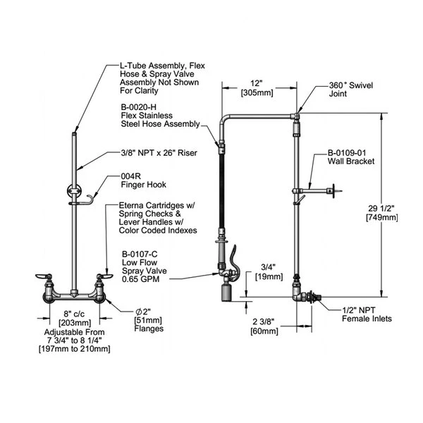 Be the first to review “T&S Brass And Bronze Works T&S B-0131-BC Wall Mounted 29 3/4″ High Pre-Rinse Faucet With Adjustable 8″ Centers, Low Flow Spray Valve, Swivel Arm, 20″ Hose, And 6″ Wall Bracket” Cancel reply