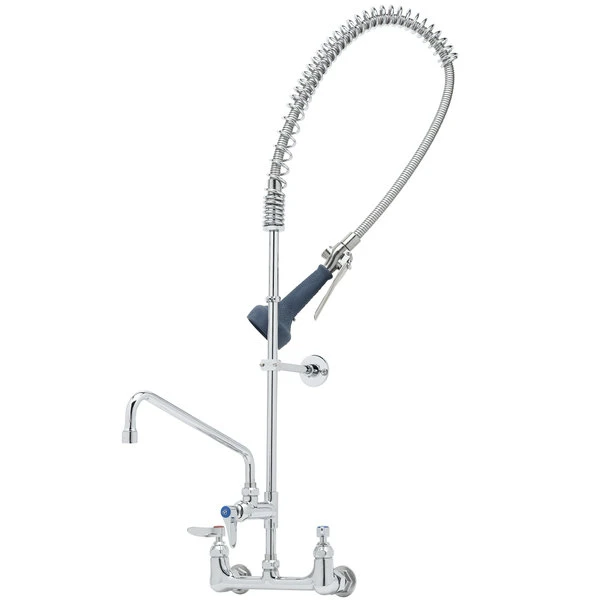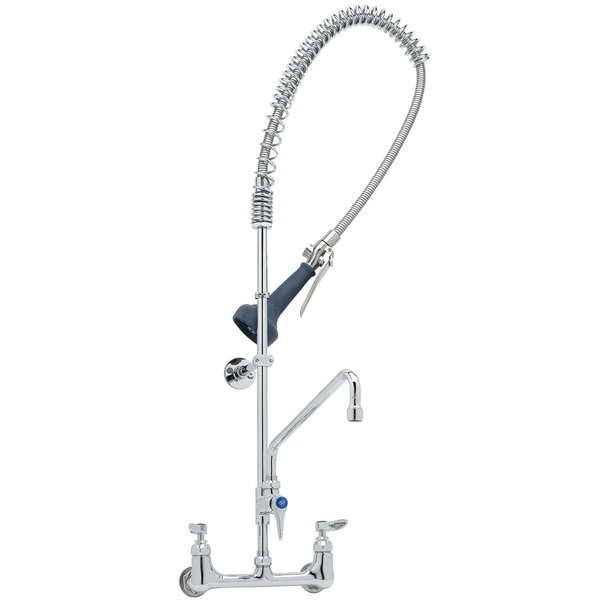 T&S Brass And Bronze Works T&S B-0133-A12-08C EasyInstall Wall Mounted 37 1/2″ High Pre-Rinse Faucet With Adjustable 8″ Centers, Ergonomic Low Flow Spray Valve, 44″ Hose, And 12″ Add-On Faucet