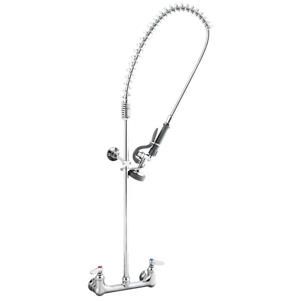 T&S Brass And Bronze Works T&S B-0133-CCB-CR EasyInstall Wall Mounted 35 1/2″ High Pre-Rinse Faucet With Adjustable 8″ Centers, 44″ Hose, And 6″ Wall Bracket