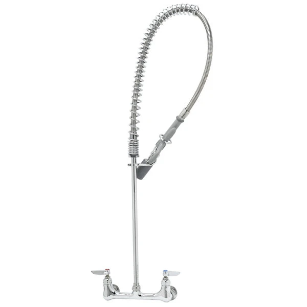 T&S Brass And Bronze Works T&S B-0133-CR-C EasyInstall Wall Mounted 33 1/4″ High Pre-Rinse Faucet With Adjustable 8″ Centers, Low Flow Spray Valve, And 44″ Hose