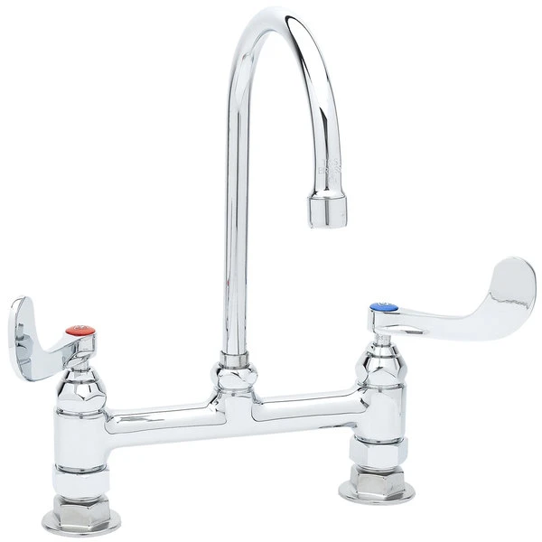 T&S Brass And Bronze Works T&S B-0322-04 Deck Mounted Surgical Sink Faucet With 8″ Adjustable Centers, 5 1/2″ Rigid Gooseneck Spout, And 4″ Wrist Action Handles