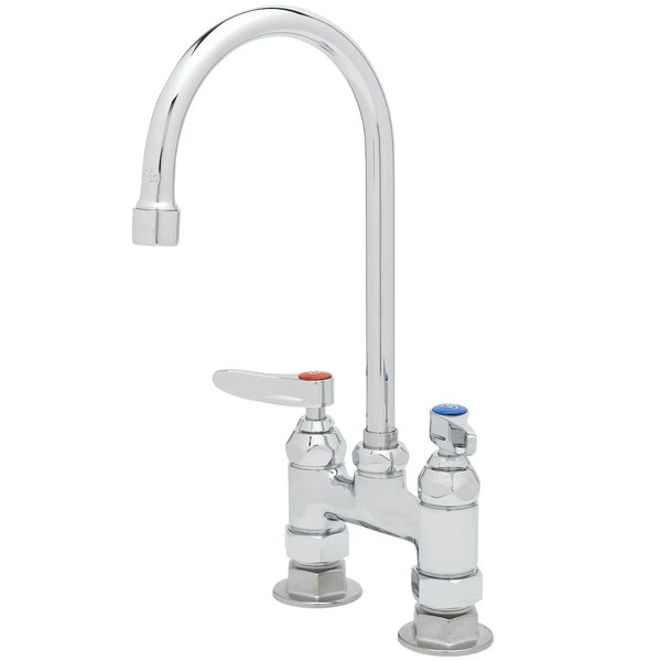 T&S Brass And Bronze Works T&S B-0325-CR Deck Mount Double Pantry Mixing Faucet With 4″ Adjustable Centers, 5 11/16″ Gooseneck Spout, And Cerama Cartridges