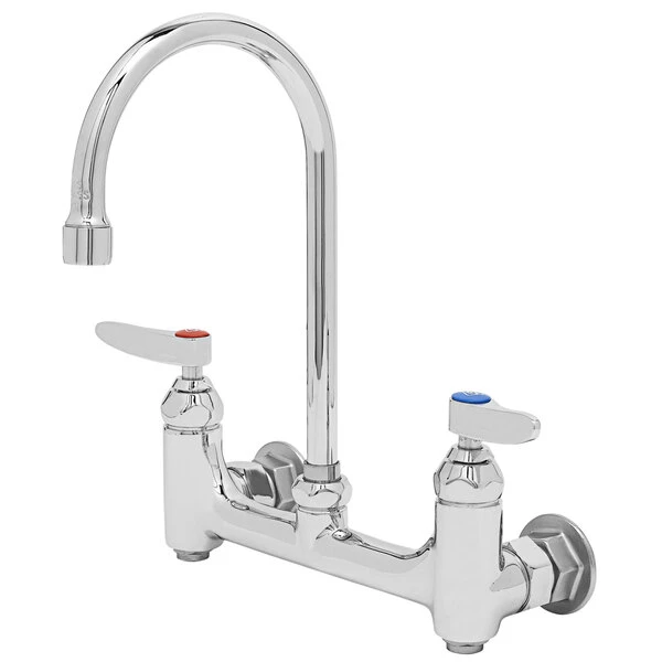 T&S Brass And Bronze Works T&S B-0331-BST Wall Mounted Faucet With 8″ Adjustable Centers, 5 11/16″ Swivel Gooseneck, Eterna Cartridges, And Built-In Stops
