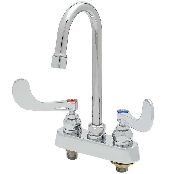 T&S Brass And Bronze Works T&S B-1141-02A-WH4 Deck Mount Workboard Faucet With Wrist Action Handles, 4″ Centers, 4 3/8″ Gooseneck, Escutcheon And Tailpieces