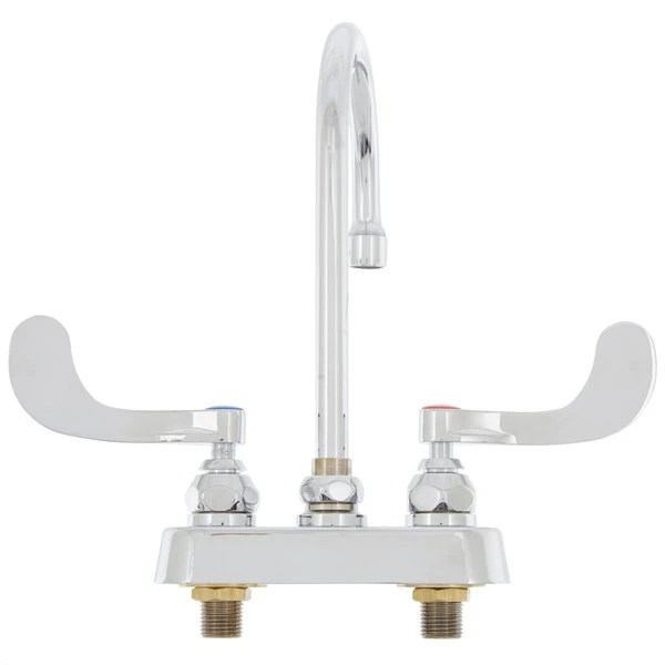 T&S Brass And Bronze Works T&S B-1141-04 Deck Mount Workboard Faucet With 4″ Centers, 5 3/4″ Gooseneck Spout, 4″ Wrist Action Handles, Escutcheon, And Tailpieces