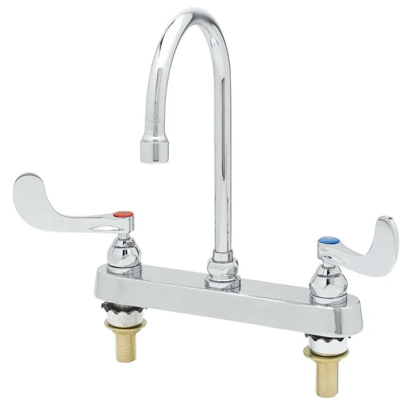 T&S Brass And Bronze Works T&S B-1142-04XS-F12 Deck Mounted Workboard Faucet With 8″ Centers, 5 3/4″ Gooseneck Spout, 1.2 GPM Aerator, Eterna Cartridges, And Wrist Handles