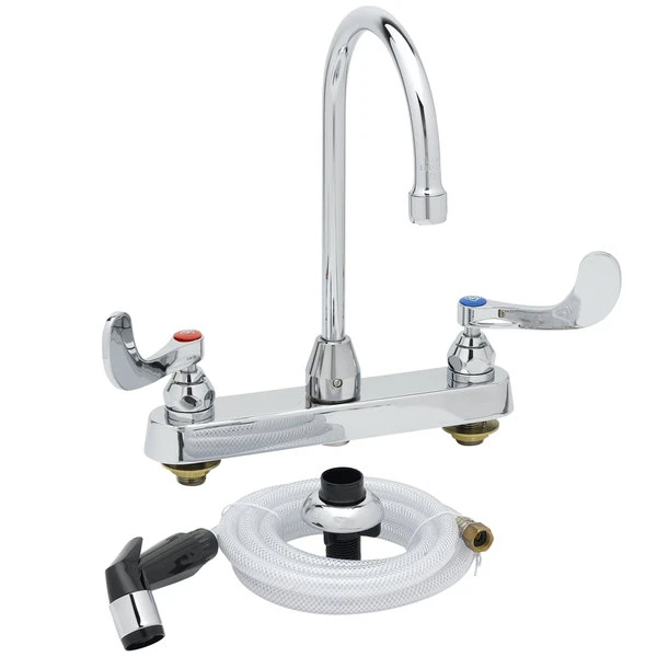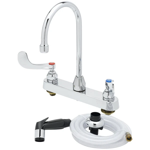 T&S Brass And Bronze Works T&S B-1172-07-WH4 Deck Mount Workboard Faucet With 8″ Centers, 5 3/4″ Gooseneck Spout, 4″ Wrist Action Handles, And Sidespray