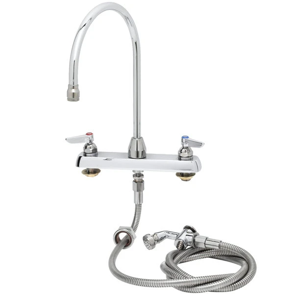 T&S Brass And Bronze Works T&S B-1172-T Deck Mount Workboard Faucet With 8″ Centers, 8 13/16″ Gooseneck Spout, And 002857-40 Spray Valve