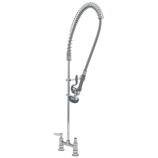 T&S Brass And Bronze Works T&S B-2223 Deck Mounted 41 3/4″ High Pre-Rinse Faucet With Adjustable 6″ Centers, 44″ Hose, And 6″ Wall Bracket
