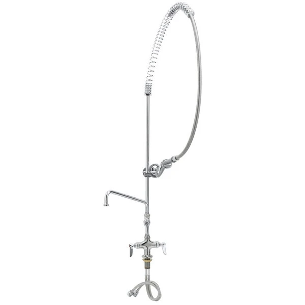 T&S Brass And Bronze Works T&S B-2349-05 Single Hole Deck Mount Faucet Base With Flex Hose Inlets, B-0107 Spray Valve, 12″ Add On Nozzle, And 12″ Wall Bracket