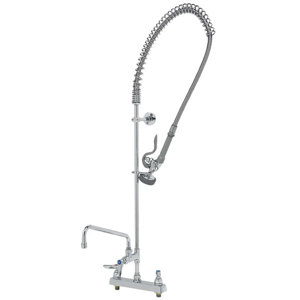 T&S Brass And Bronze Works T&S B-5120-12-CR-B EasyInstall Deck Mounted Pre-Rinse Faucet With 8″ Centers, 44″ Hose, 12″ Add-On Faucet, 1.15 GPM Spray Valve, And Cerama Cartridges