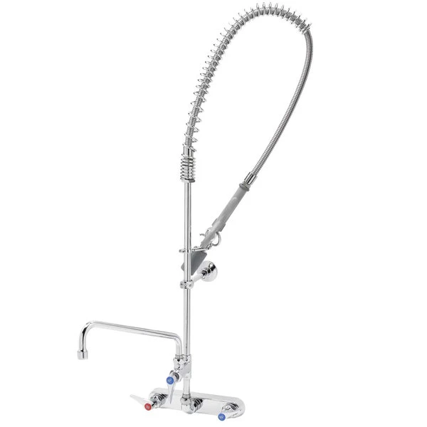 T&S Brass And Bronze Works T&S B-5125-12-BJ EasyInstall Wall Mounted Pre-Rinse Faucet With 8″ Centers, 44″ Hose, 12″ Add-On Faucet, 1.07 GPM Spray Valve, And Eterna Cartridges